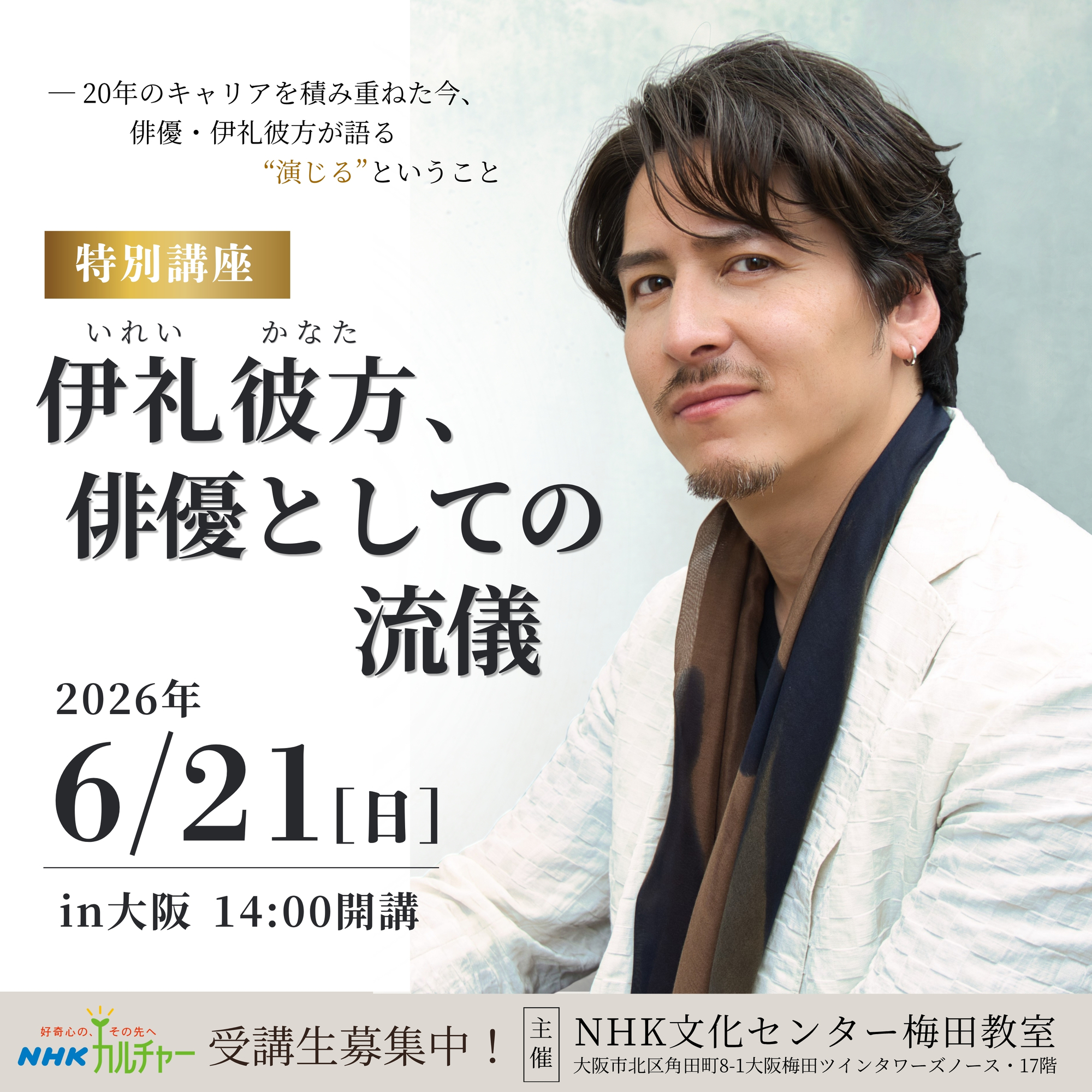 【公式サイト】NHK文化センター梅田教室:伊礼彼方、俳優としての流儀 | 好奇心の、その先へ NHKカルチャー