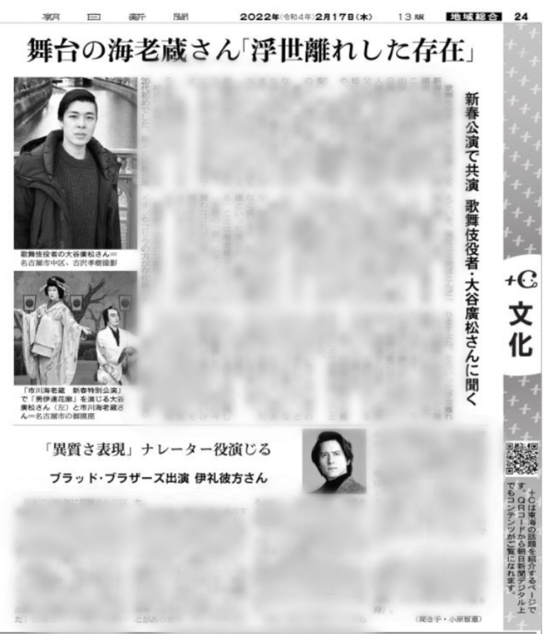 朝日新聞(中部地区)紙面にインタビューが掲載されました【2022年2月17日】