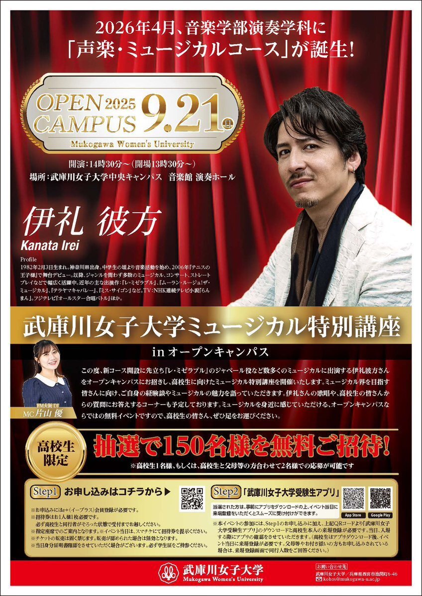 伊礼彼方ミュージカル特別講座in武庫川女子大学オープンキャンパス【高校生限定150名様無料ご招待】のチケット情報(兵庫県) - イープラス